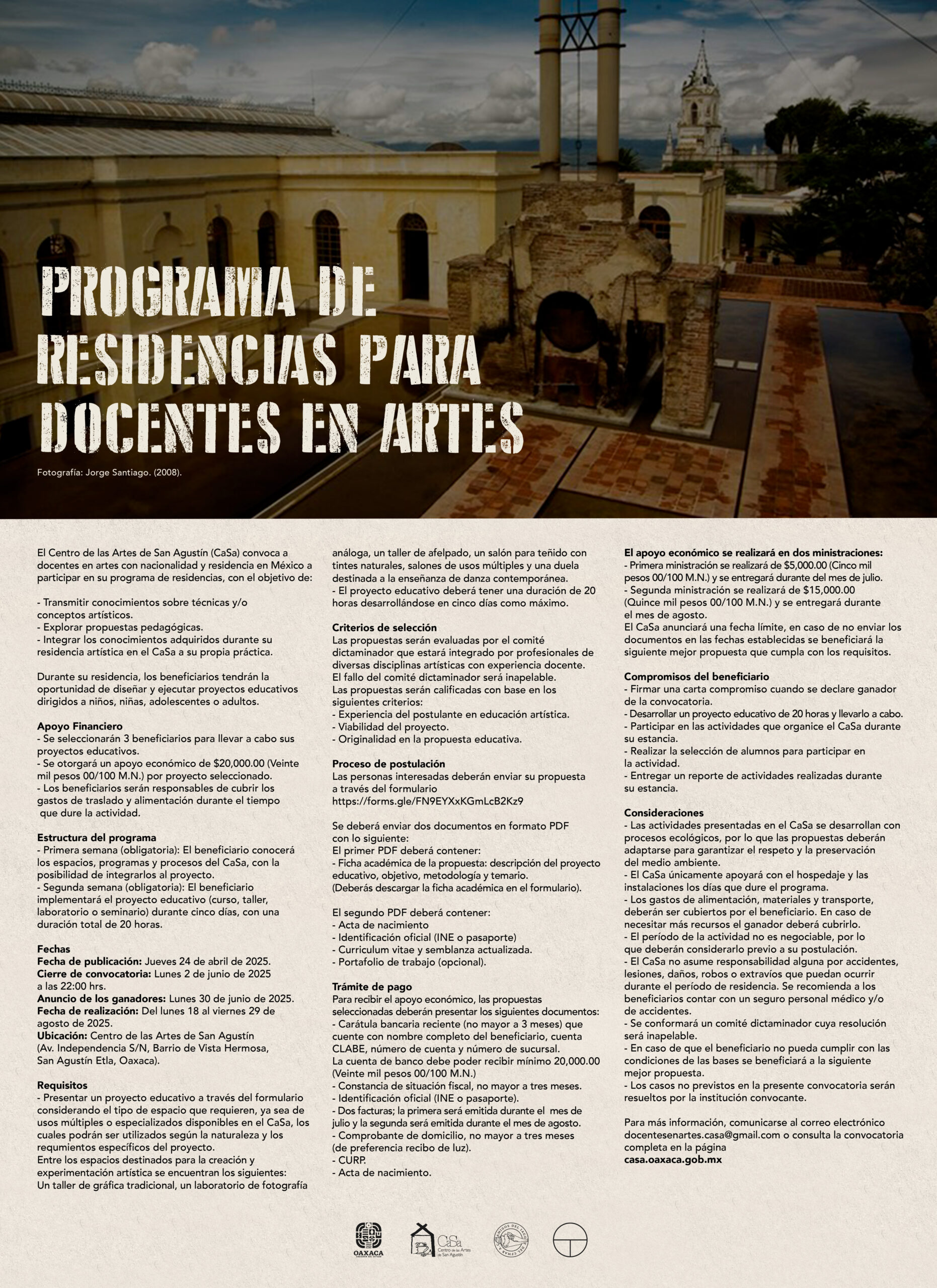 Para más información, comunicarse al correo electrónico docentesenartes.casa@gmail.com o consulta la página https://casa.oaxaca.gob.mx/