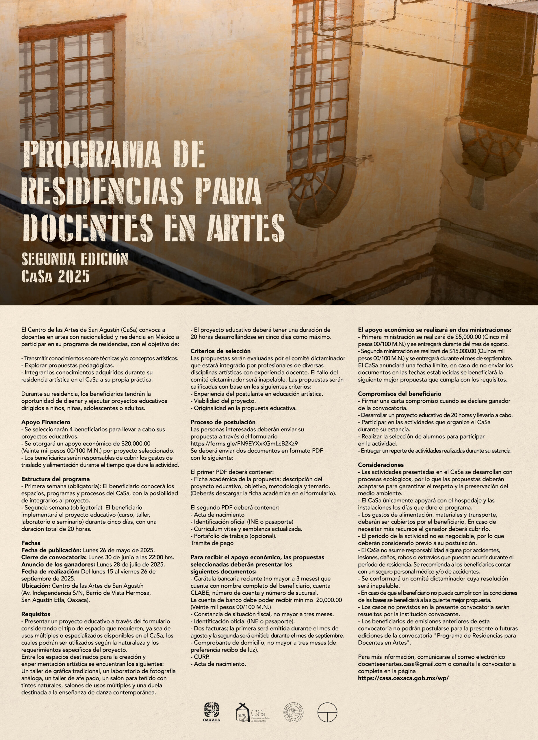 Para más información, comunicarse al correo electrónico docentesenartes.casa@gmail.com o consulta la página https://casa.oaxaca.gob.mx/