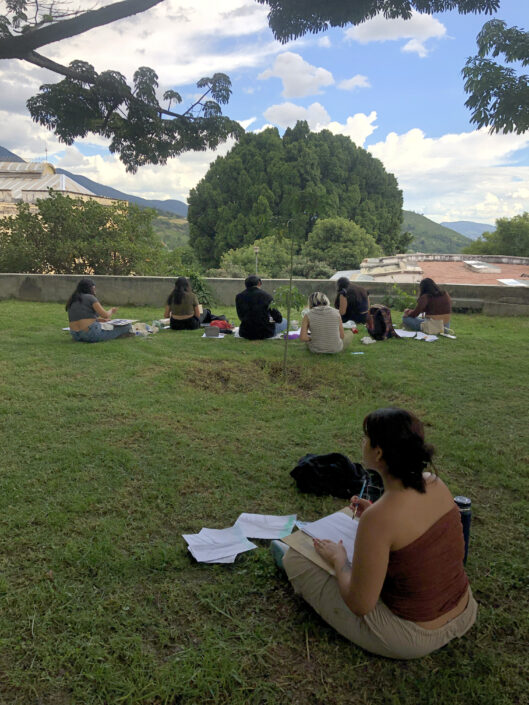 | 1. Desarrollar la capacidad de observación y análisis visual mediante la práctica del dibujo al aire libre. 2. Fortalecer la conexión con el entorno natural y arquitectónico de CaSa y el paisaje que se observa del paisaje de San Agustín Etla a través de ejercicios de representación de dibujo. 3. Explorar distintas técnicas clásicas del dibujo al natural, comprendiendo su relación con la tradición pictórica global. 4. Guiar a cada participante de manera personalizada, reforzando sus habilidades individuales en lugar de imponer resultados uniformes, procurando la riqueza de la diversidad. 5. Generar un espacio de experimentación artística, con formación clásica donde el dibujo funcione como un laboratorio de ideas y sobre todo de expresión personal. |