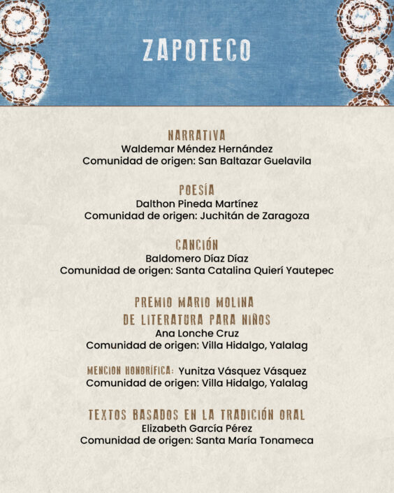 1. Podrán participar hablantes del zapoteco, en cualquiera de sus variantes, sin importar su lugar de residencia.